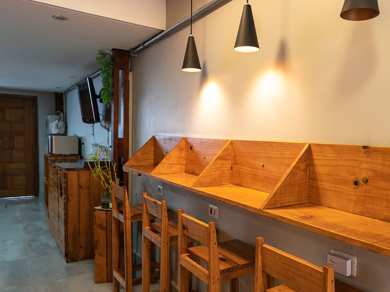Nosso hostel conta com dois quartos compartilhados (feminino e masculino), um quarto família (para 5 pessoas), três suítes triplas, duas suítes quádruplas e uma suíte dupla ou individual.